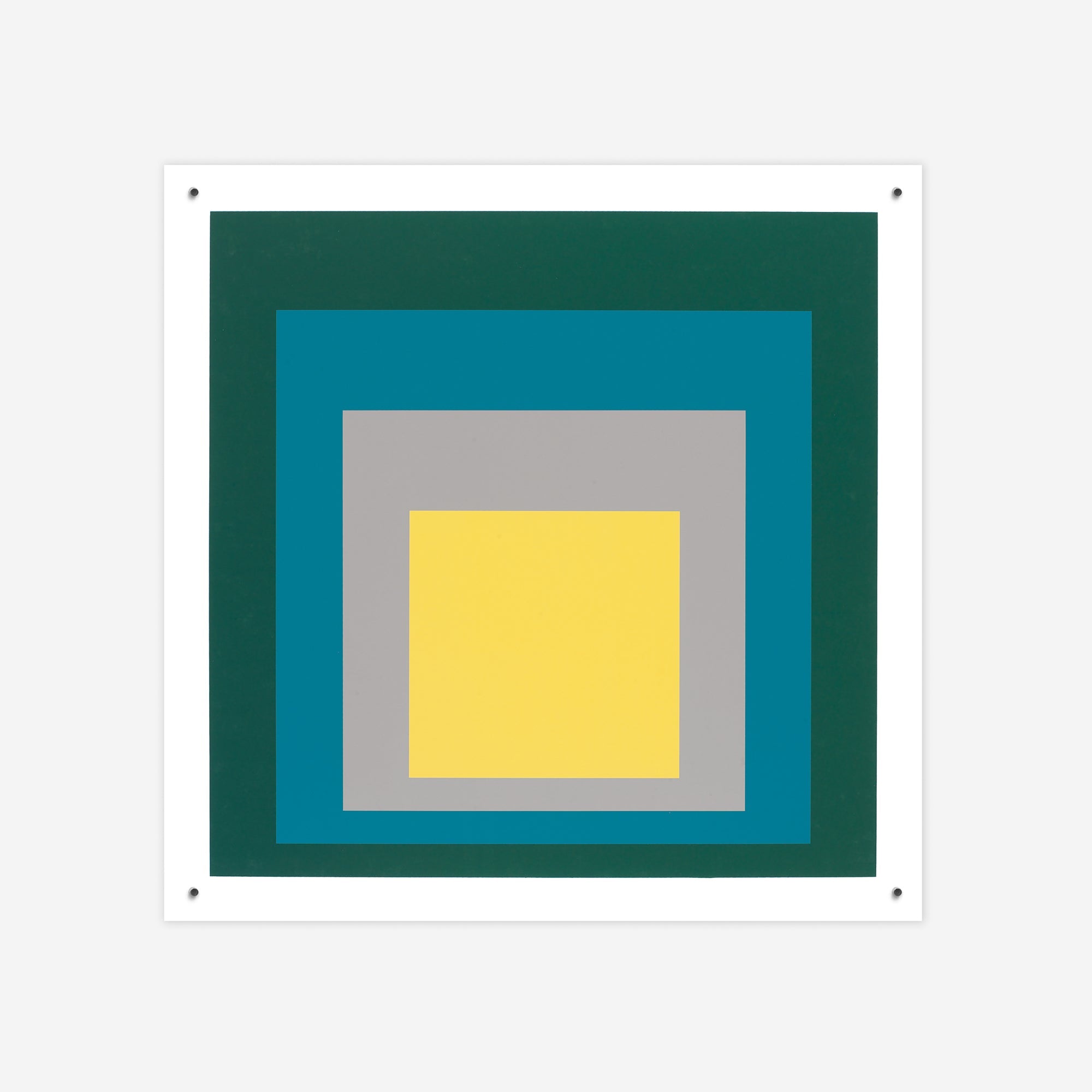 This 1967 piece is part of Josef Albers' seminal Homage to the Square series, a two-decade exploration of colour interaction and his most influential artistic achievement. With mathematically arranged concentric squares in varied hues, this series””spanning over two thousand works””remains a foundational influence on colour theory and art education today.
