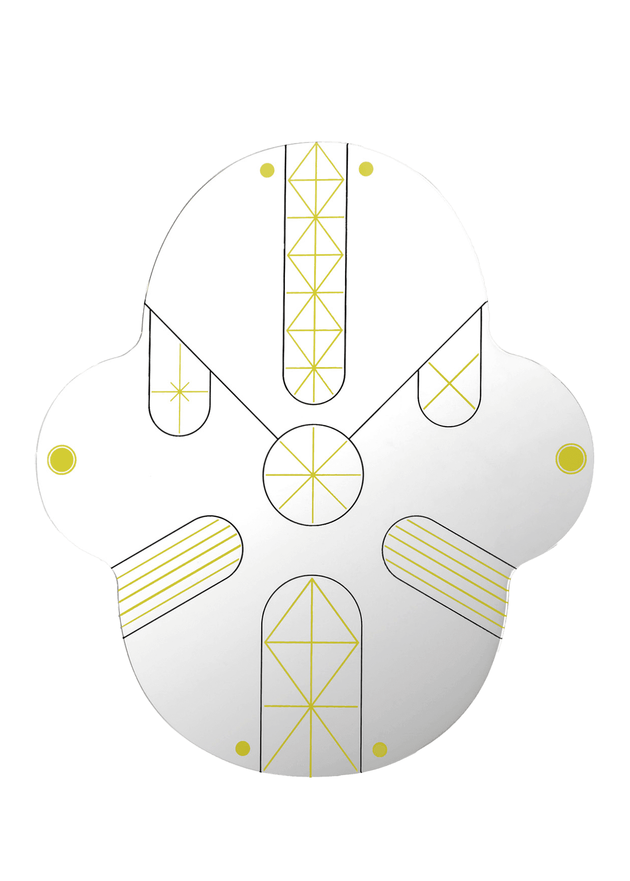 Jaime Hayon designed these two mirrors for BD. They represent two faces (King and Kong) and are available in two sizes. Gold and black geometric lines spread across the mirrors in symmetrical patterns. The silhouette of the mirrors is like that of a monkey’s face and can be placed alongside each other or individually.