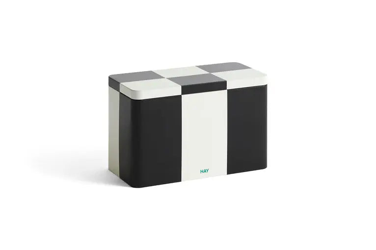 HAY's Tin Containers are a collection of functional and decorative storage boxes featuring colourful checked patterns and a glossy finish. The lid and container are smoothly aligned, creating a sleek, seamless appearance, whilst ensuring an airtight fit that is suitable for dry food storage. Available in a wide assortment of sizes, shapes and designs, the Tin Container can be placed decoratively on shelves or tables around the home for storing and organising different items.