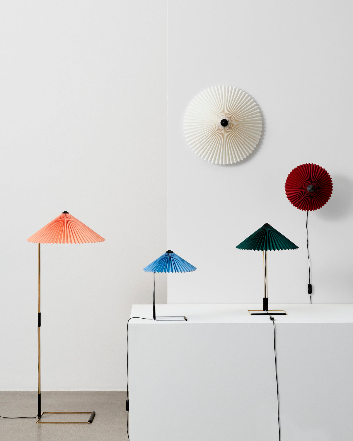 The Matin Flush Mount offers a contemporary yet poetic design, with a construction that combines visual delicacy with physical robustness. The lamp comprises a painted steel bracket for mounting onto the wall or ceiling, and is covered by a pleated cotton shade in two sizes with different colour options. The light source is two retrofit E14 bulbs that create a soft and ambient light.