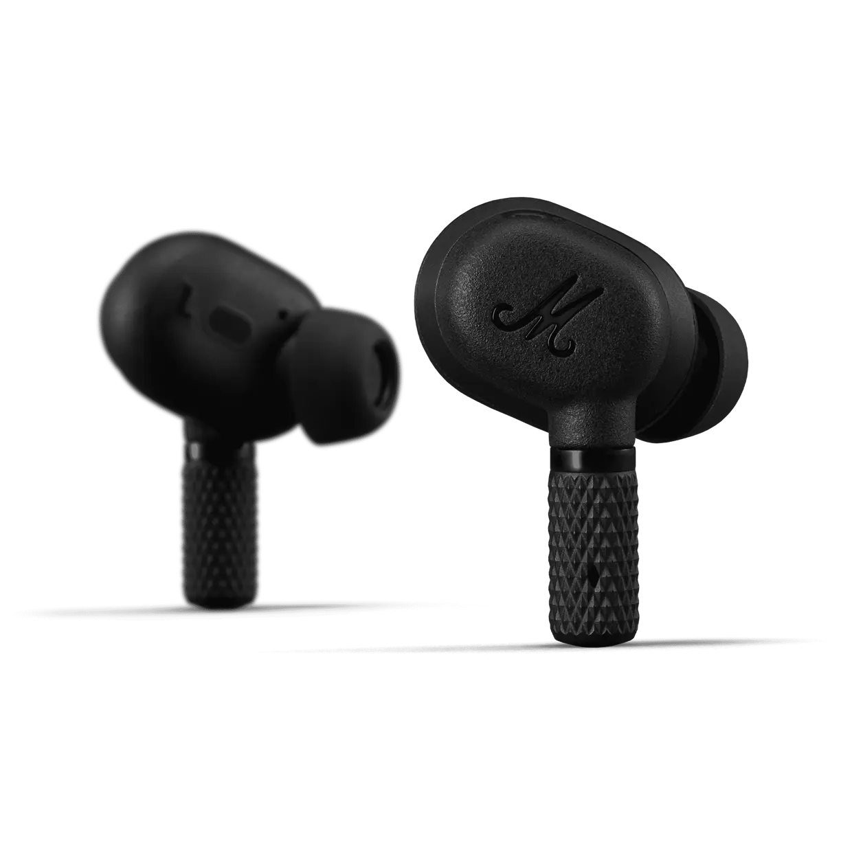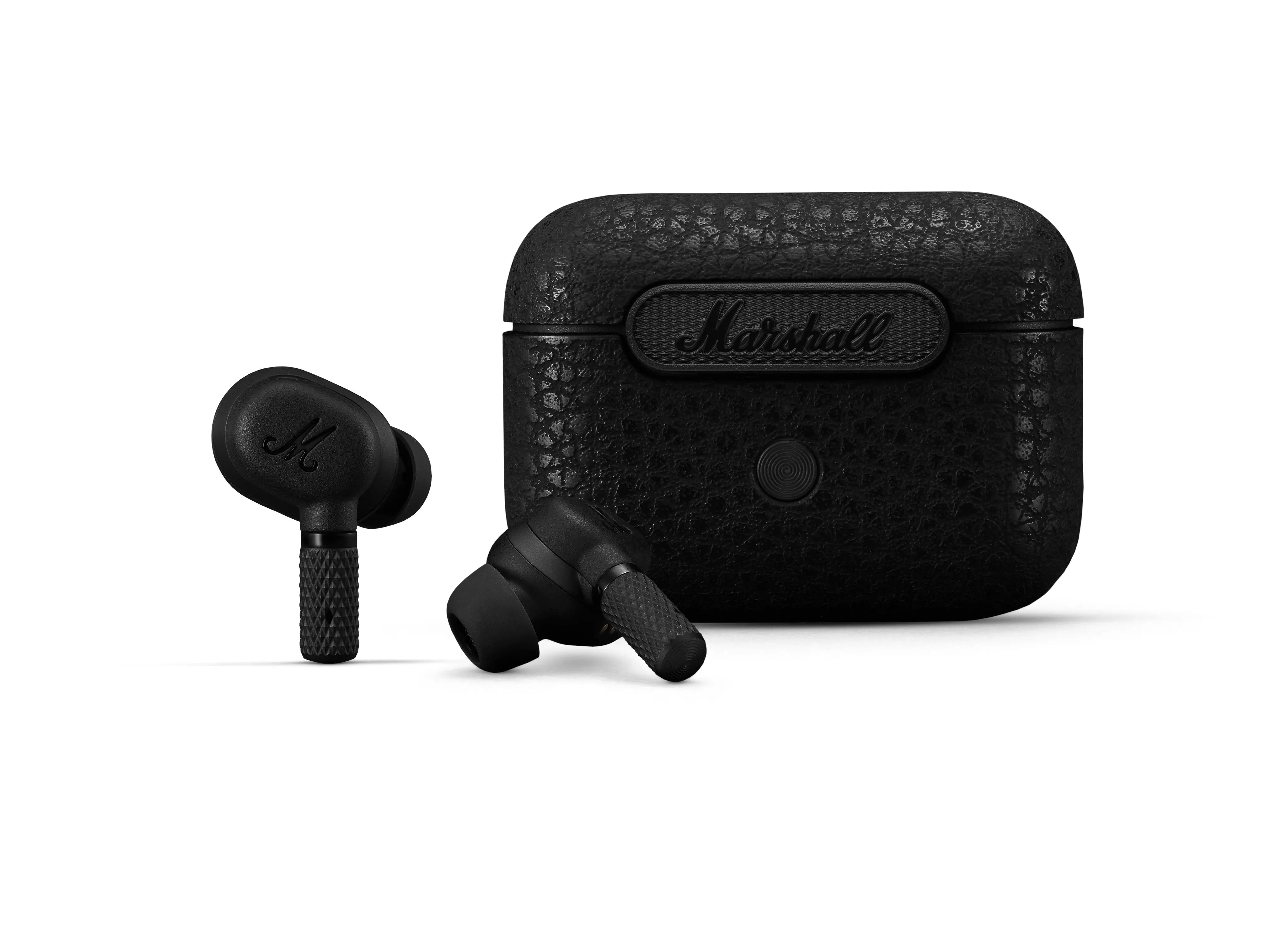 This is Motif A.N.C., Marshall's True Wireless headphones, which ensures outstanding listening pleasure while at the same time suppressing noise with active noise cancellation. Put the big stage in your pocket and enjoy a total of 20 hours of wireless playing time and the robust, portable charging box. These wireless headphones fulfill their promise of a bombastic sound in a small format. Enjoy outstanding listening pleasure throughout the day with a tailor-made design.