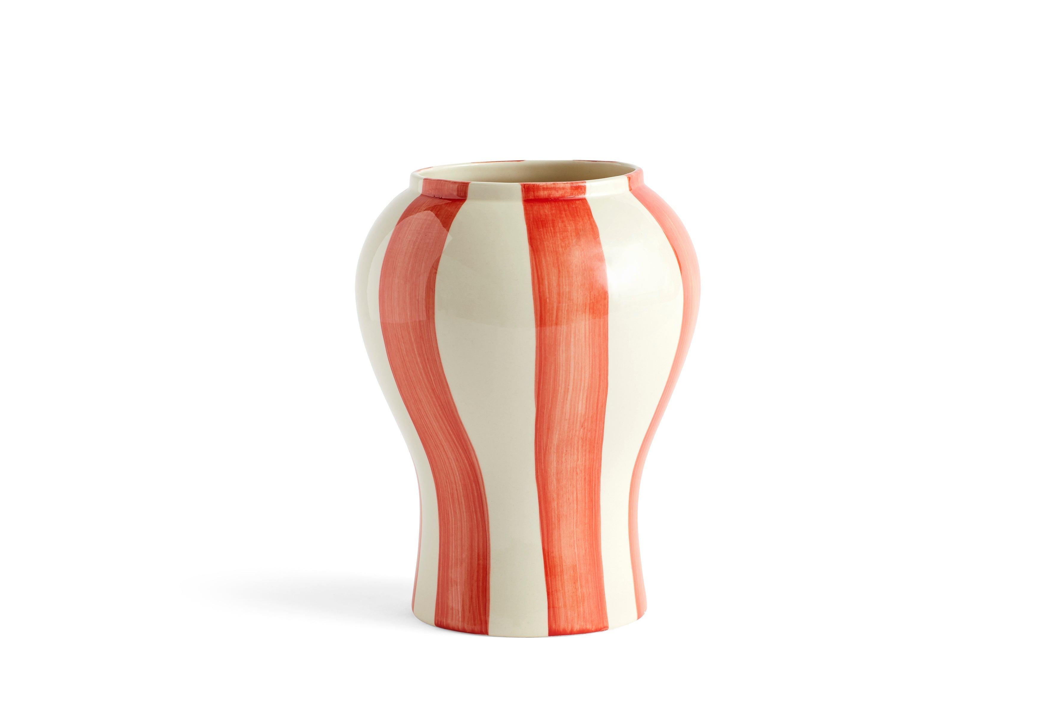 Part of a design collaboration between HAY and artist Laila Gohar that celebrates the joy of meeting family and friends over a good meal, the Sobremesa Stripe Vase is a decorative vase designed to add ambiance to any table setting. Hand-painted in stoneware with a colourful striped pattern that gives each jug a unique quality, it can be used for bunches of flowers, blossoming branches or storing kitchen utensils.