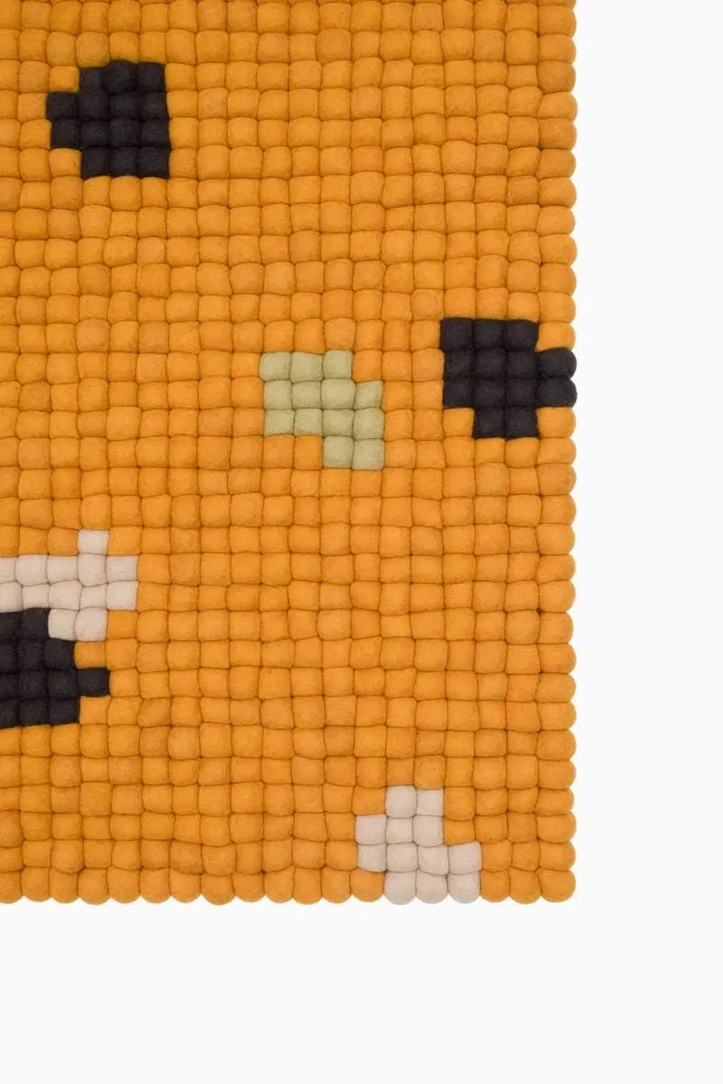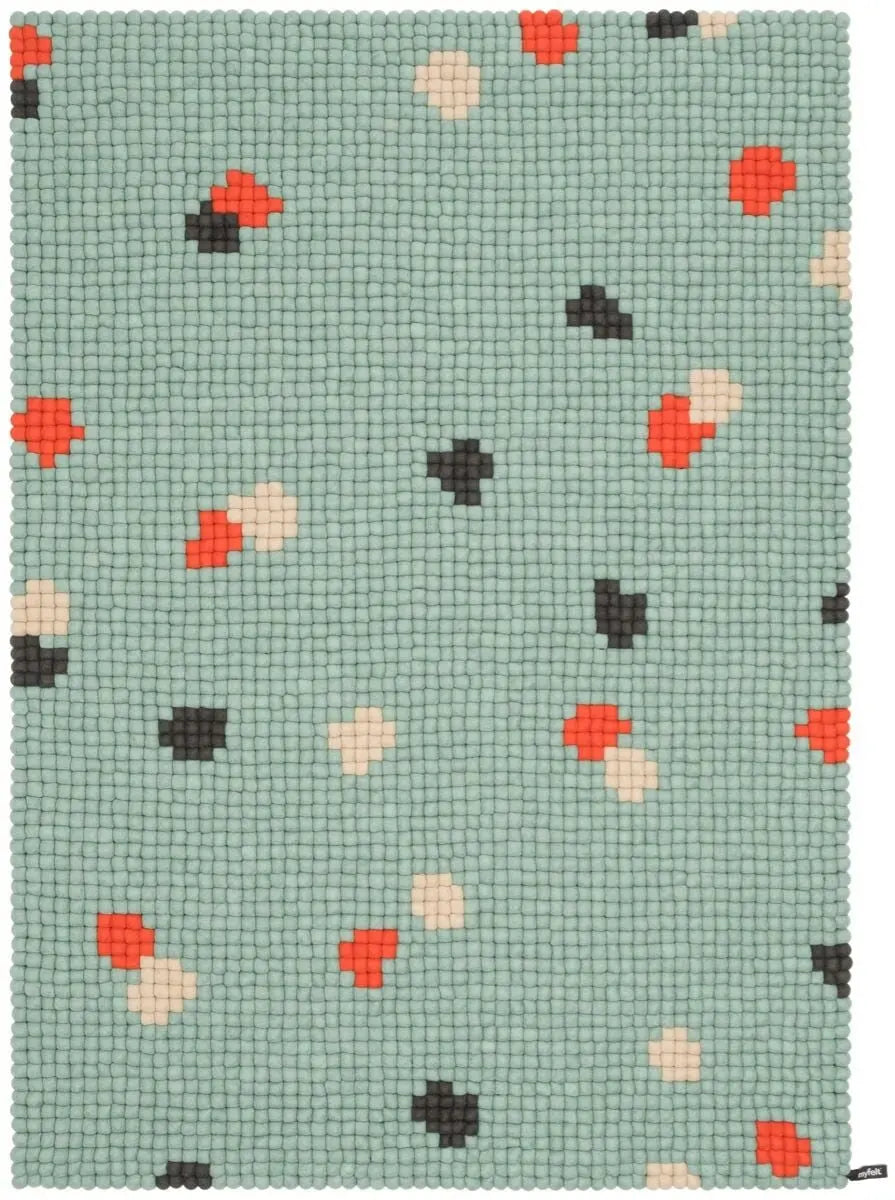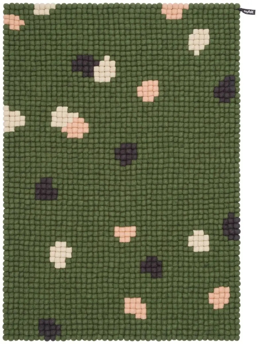 純粋なバージンウールで作られた正方形のピンクのフェルトボールカーペット。