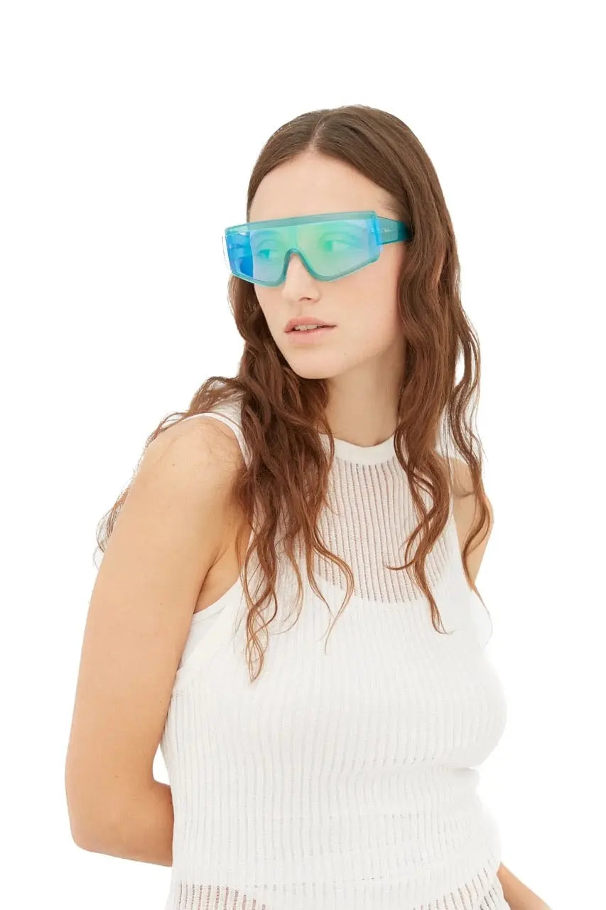 ZED は、アーバン ライフスタイルとハイテク スポーツウェアの交差点に位置する、高速走行、先進的、流れるようなシルエットです。 2010 年代半ばに RSF の最初のシールドの 1 つとして考案された ZED は、鋭い新しいアイデンティティで更新されました。厚いアセテート構造が特徴で、その巧みな構造により、柔らかい丸みを帯びたコーナーと正確な角度の両方が現れ、単一レンズを所定の位置にしっかりと包み込みます。シャープなディテール: 正面フレームの外側にある幾何学的な拡張レンズ。このバージョンは、フレッシュなクリスタルターコイズアセテートに、それにマッチするミラーグリーンのレンズが付いています。