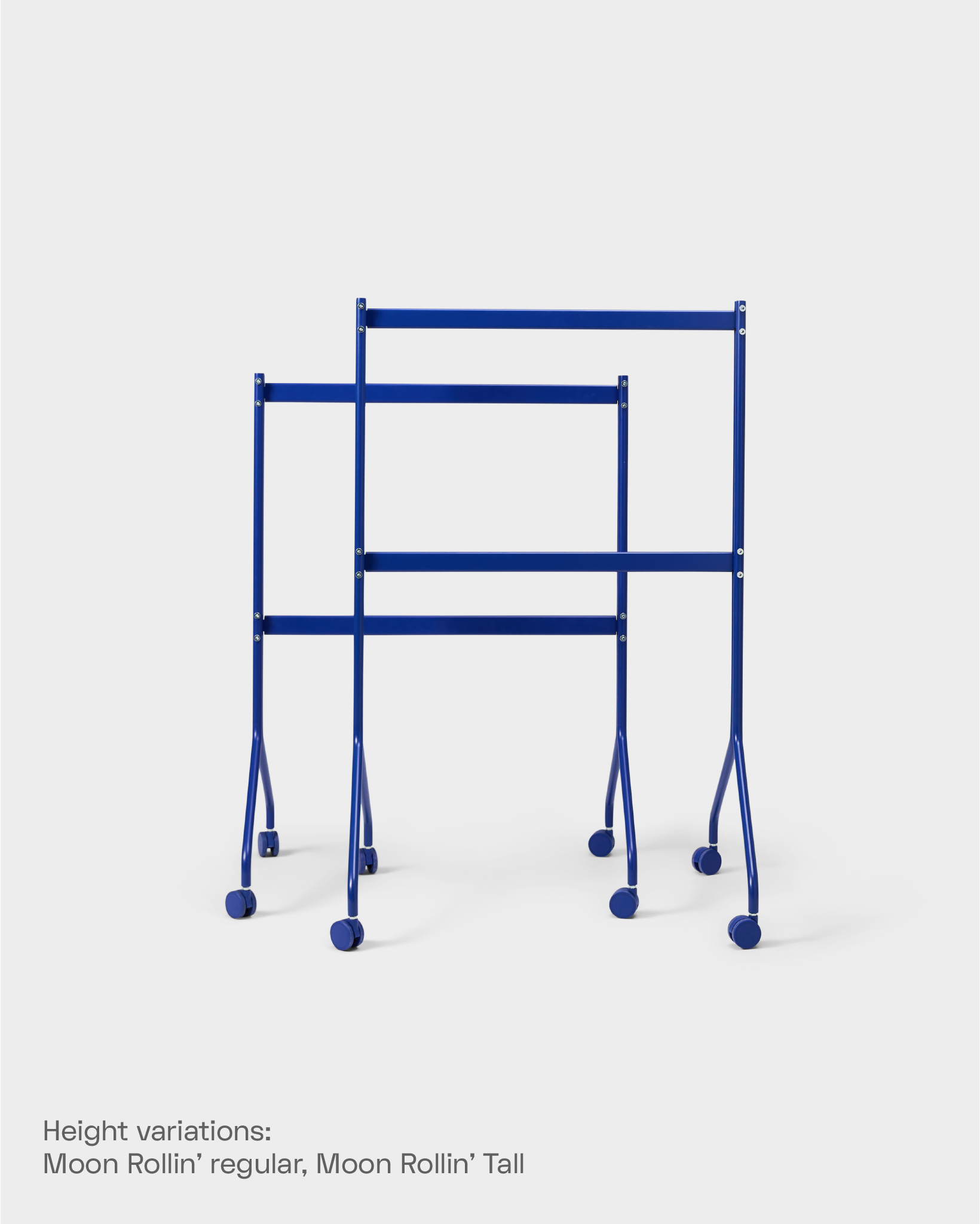 Discover a more flexible interior design with Moon Rollin’, allowing you to easily roll the TV from one room to another. Moon Rollin' is a functional stand that features soft, curved lines and a playful design language that is distinctive to the Pipe series. These soft yet playful curves add a significant contrast to the sturdy steel construction, which ensures the stability and durability of the stand.