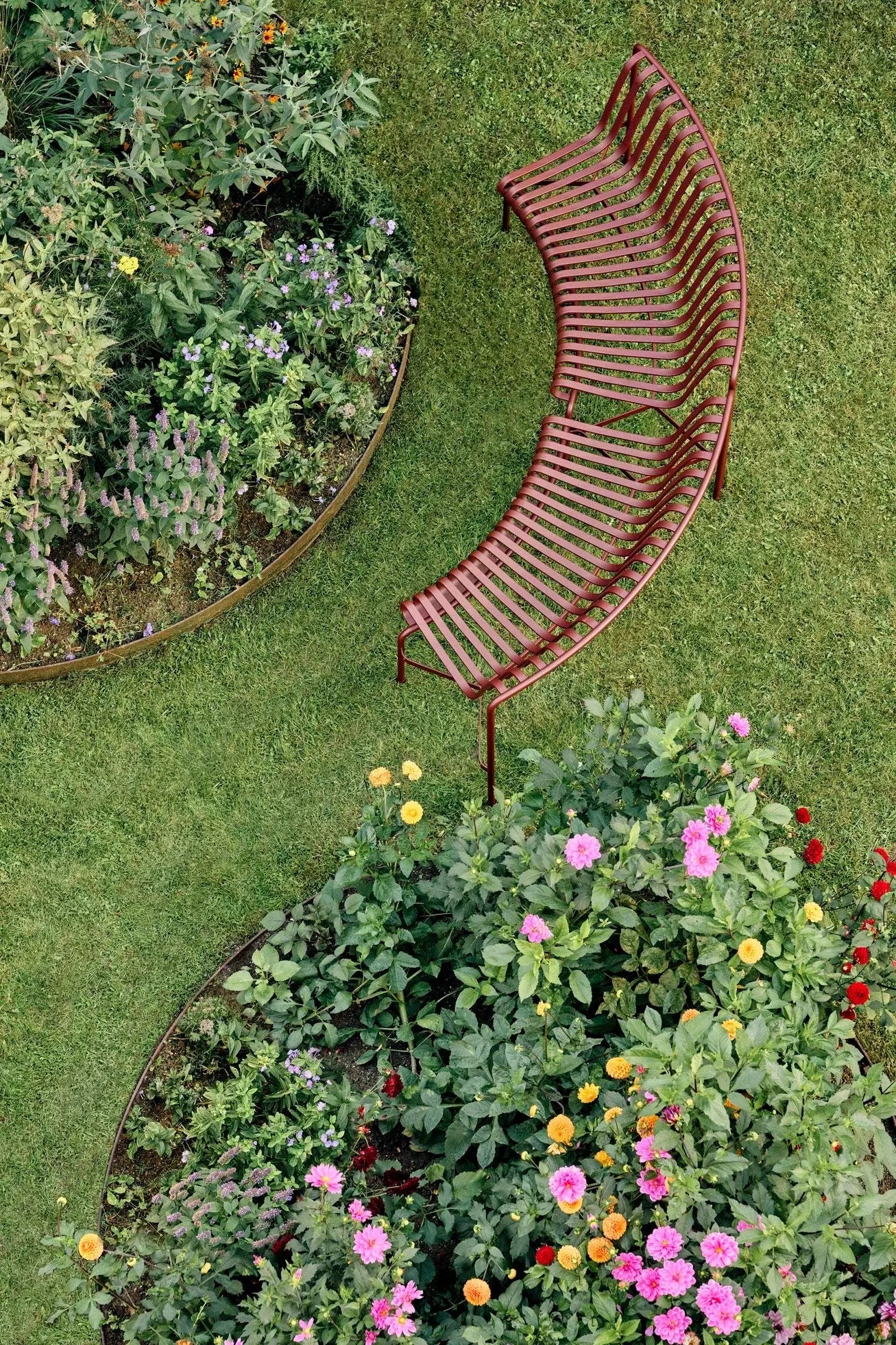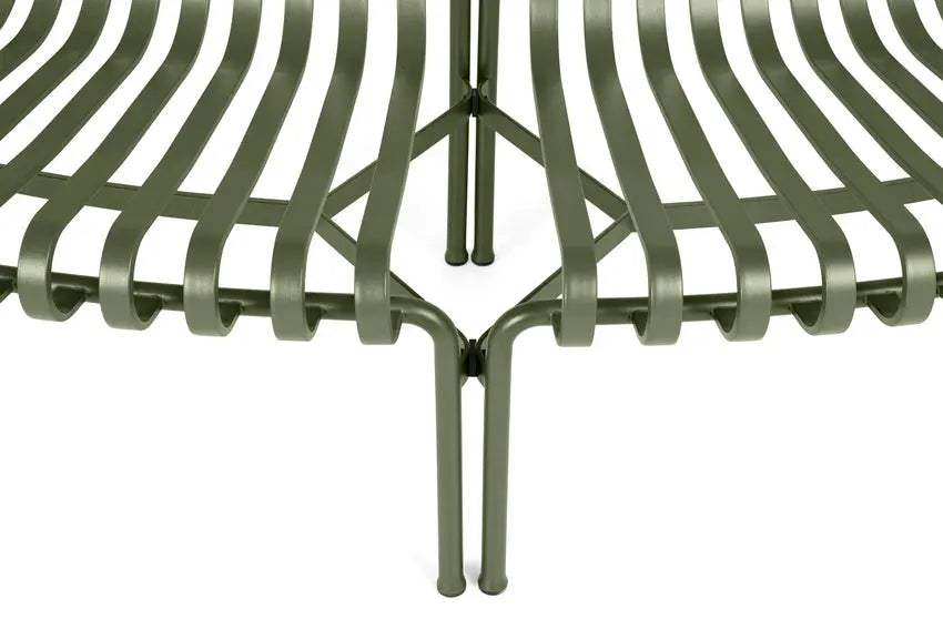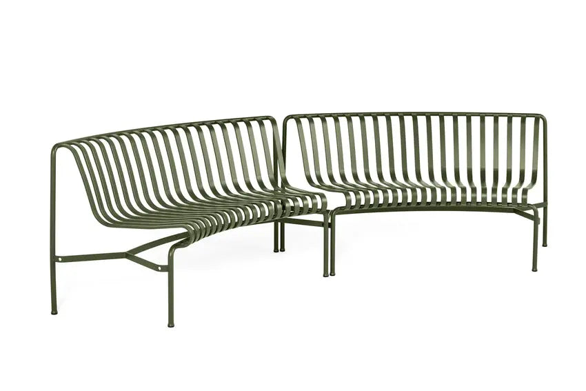 Designed by French duo Ronan and Erwan Bouroullec, the Palissade Park Dining Bench is a modular bench designed for outdoor use. The curved frame comes in two variants, which are designed to curve in two different directions, enabling the benches to be inward facing, outward facing, or a combination of the two. When connecting a minimum of two benches, customised seating arrangements can be created in layouts such as circles, waves and arcs. The elegant design is united by the same symmetrical geometry and graphic idiom as the rest of the Palissade series, engineered to reproduce the same visual simplicity that allows it to integrate effortlessly into a natural landscape or urban setting. Specifically designed for outdoor use, the powder-coated steel has a protective outdoor primer for optimal durability and resilience, which makes it last for a longer period of time. Available in selected colours, the Park Dining Bench is ideal for creating unique seating configurations in gardens, parks and public spaces