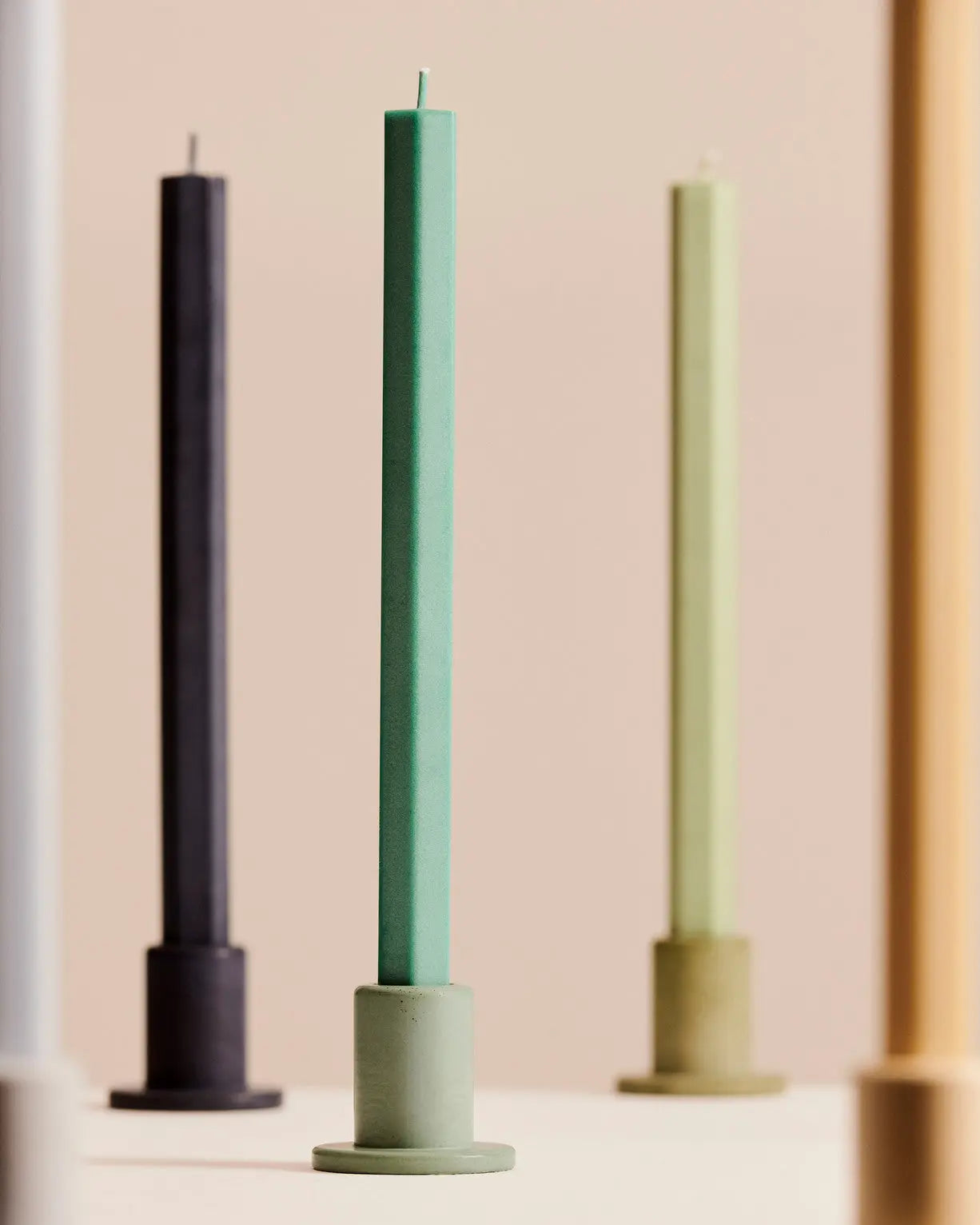 Crafted in concrete with a smooth matte finish, the Tube Candleholder fuses a minimalistic tubular design with a muted palette. Designed to be used with HAY candles, the functional candleholder features internal ridges that hold the candle securely and a circular base to balance the design and catch any dripping wax. Available in a wide assortment of colours, the candleholders can be used individually or grouped together in contrasting designs.