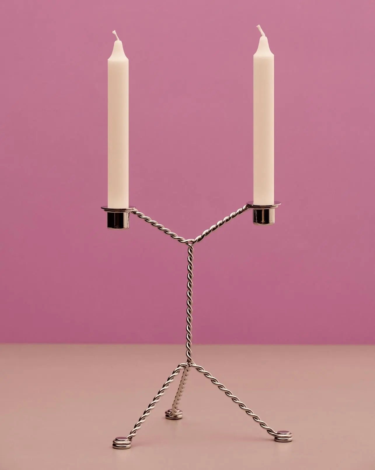 Designed by Dutch designer Chris Kabel, the Wire Candleholder is crafted from a single piece of twisted steel wire that is bent into a double candelabra. The two candleholders at the top are counterbalanced by the three angled legs, creating a simple yet elegant design that can be used on windowsills, dining tables, or other surfaces around the home.