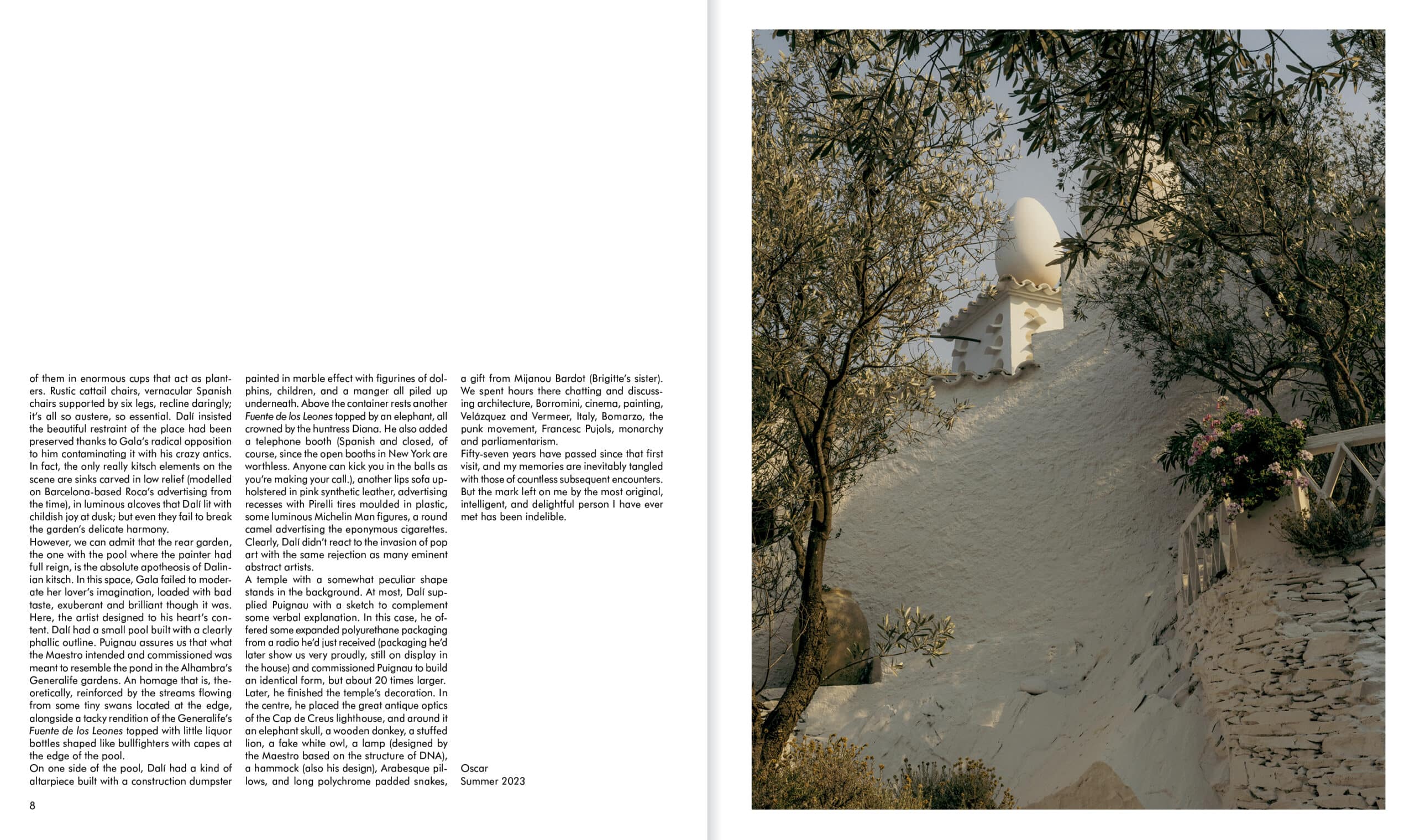 封面和封底均印有可可拍摄房屋时创作的一首原创诗歌,象征着她对打破单一媒介的内省式创作方式。通过这些亲身经历,达利之家让参观者有机会接触到这个独特的空间,它本身就是达利式的创作,既是艺术家独特风格的见证,也是其创作灵感的源泉。