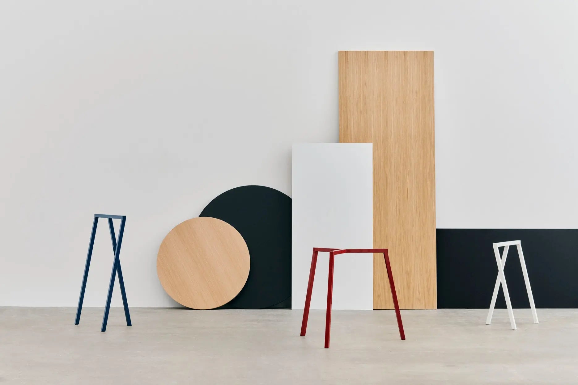 Loop Stand 是 Leif Jørgensen 精心设计的极简实用系列,包含衣帽架、衣柜家具和桌子,均具有一致的家族特色。Loop Stand High 提供多种款式,其视觉效果与衣帽架相似,但尺寸较小,支架通过螺丝固定在桌面上。