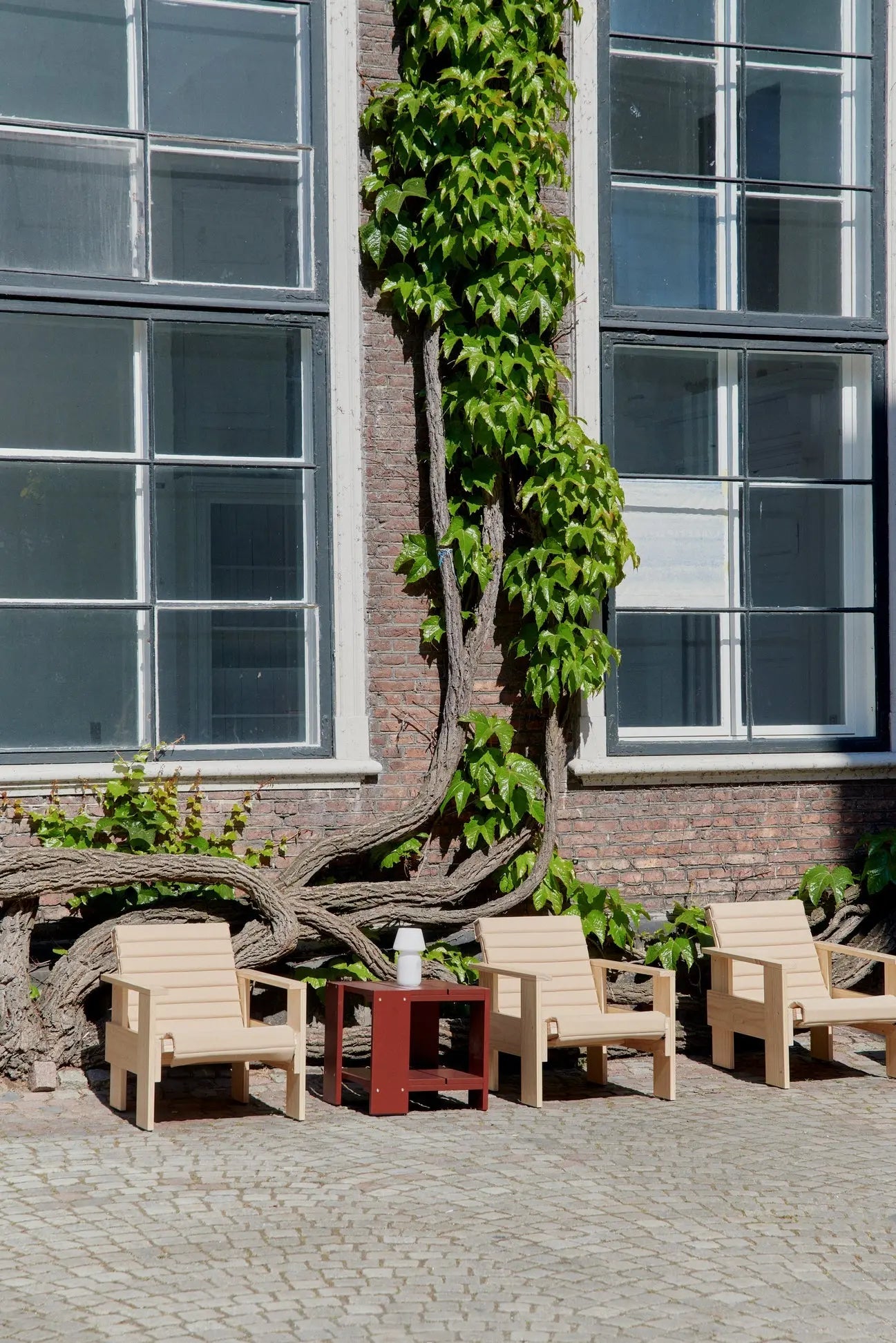Crate 系列最初由荷兰建筑师兼设计师 Gerrit Rietveld 于 1934 年设计,旨在利用剩余的木制运输箱。如今,该系列在 Rietveld Originals x HAY 合作系列中重新推出。Crate 休闲椅在尊重原始设计的前提下,采用了同样精确平衡的比例和透明结构,以最大限度地降低生产成本并优化装配流程。这款椅子比例低,靠背和座椅略微倾斜,配有支撑扶手,其简洁性和空间设计体现了设计师的建筑风格——在不占用空间的情况下提供功能性和舒适性。Crate 休闲椅采用实心松木制成,表面为水性漆,有多种颜色可选,适用于各种户外环境,并可配以精选面料制成的座垫,更加舒适。