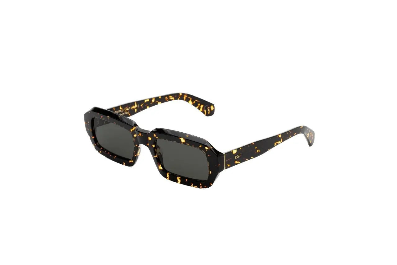 Fantasma 的核心是真正的 RSF 轮廓,其特点是其独特的街头美学。其低矮的骑行轮廓由厚醋酸纤维轮圈雕刻而成,顶部边缘经过精心雕刻。该款式秉承 RSF 城市文化的悠闲态度,设计多功能且永恒,同时为日常穿着提出了大胆的愿景。该版本采用丰富斑点的哈瓦那醋酸纤维材质,搭配黑色镜片。
