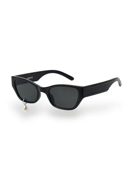 -设计为在镜片处镶有珍珠。 -灰色镜片。 - 黑色猫眼聚碳酸酯框架太阳镜。