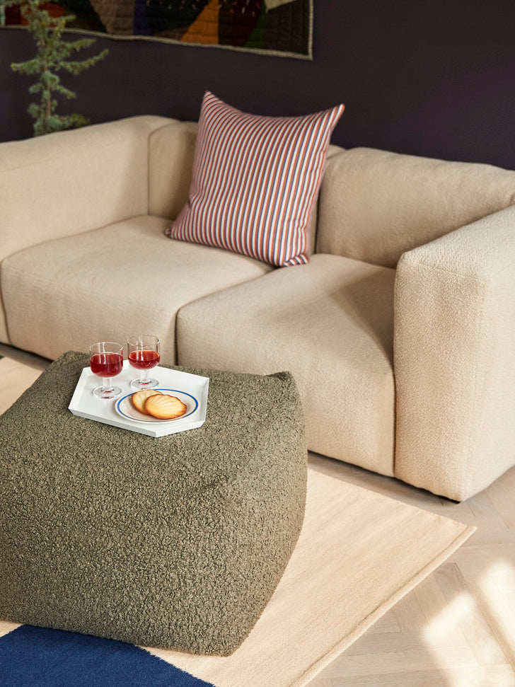 这款多功能 Snug Pouf 既可用作脚凳,也可用作备用座椅,可与 HAY 家具搭配使用,也可单独使用。它轻巧便携,非常适合用于客厅、儿童房和走廊。采用超柔软纹理面料制成,并拥有百搭的中性色调。
