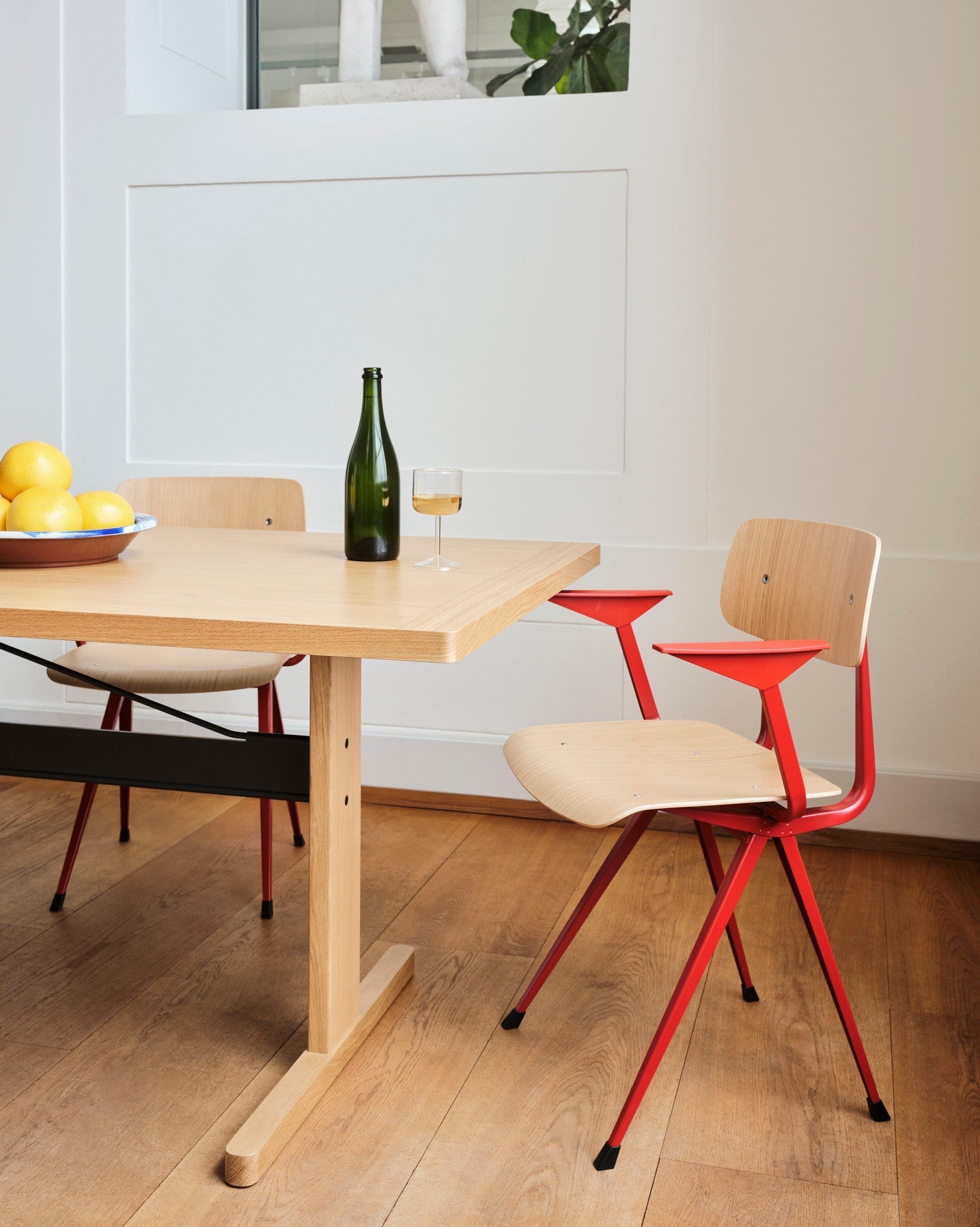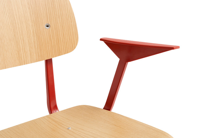 Result扶手椅与原版Result扶手椅一样,采用薄钢板底座、橡木座椅和靠背,并配有加高扶手,为设计增添了额外的舒适性和功能性。这款扶手椅最初由Friso Kramer和Wim Rietveld于20世纪50年代在阿伦德工作时创作。